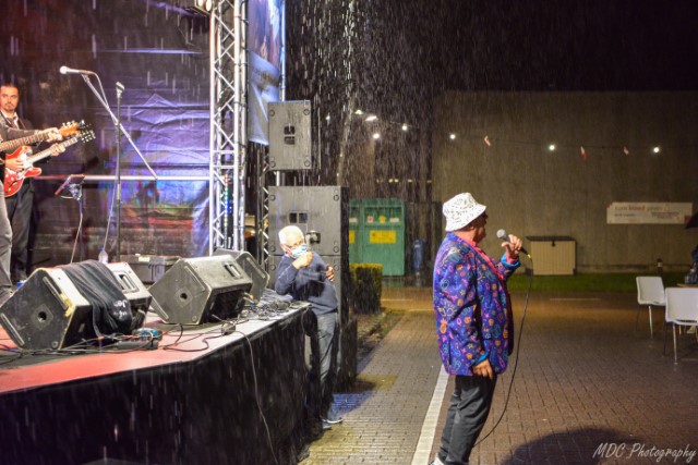 In het tweede deel ging al vrij snel de hemelsluizen open maar niet getreurd met zo’n twee topartiesten deerde dat het aanwezige publiek grotendeels niet. Respect met grote R toen Boogie Boy samen met zijn trompetist Floris nog verder de boel opzweepte met “What a wonderfull world” in de gietende regen.
