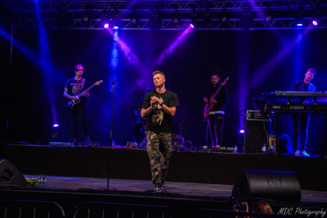 BOBBY: de twee jaar geleden door Miguel Wiels opgerichte boysband mocht met hun vlotte boysshow de spits afbijten. Brecht, Ryan, Aaron, Ruben en Simon zijn goed getraind zo bleek. Bobby brengt voornamelijk eigen nummers doorweven met enkele covers. Eigen werk is onder meer “Sing Our Song”, “That Girl” en “Hey Don’t You Know”. Mooi moment was wanneer het vijftal “She goes Na Na” (The Radios) zittend op een kruk samen ten hore brachten. Het optreden werd beëindigd met de One Direction hit “One way or another” Opmerkelijk is dat ondanks de stille periode (door covid-19) en de vrij jonge band ze toch reeds konden steunen op een goed aantal fans. Dat in Bobby een lid uit de omgeving zit zal daar wel niet vreemd aan geweest zijn.